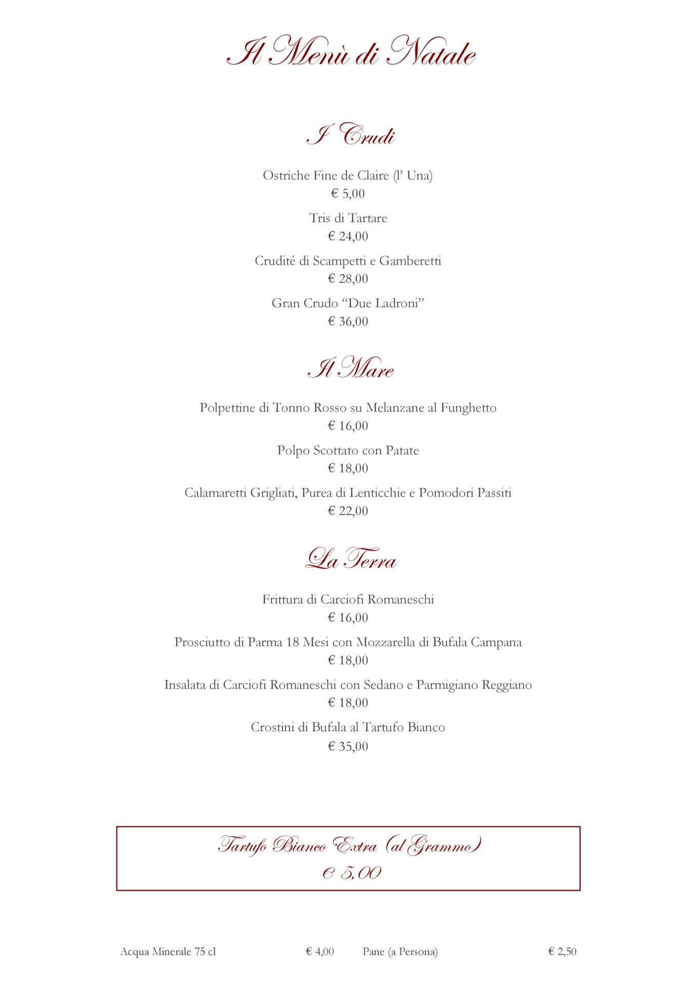 Siamo molto felici di comunicare che il 25 Dicembre 2018, il Ristorante Due Ladroni sarà aperto con un Menù alla carta dedicato.