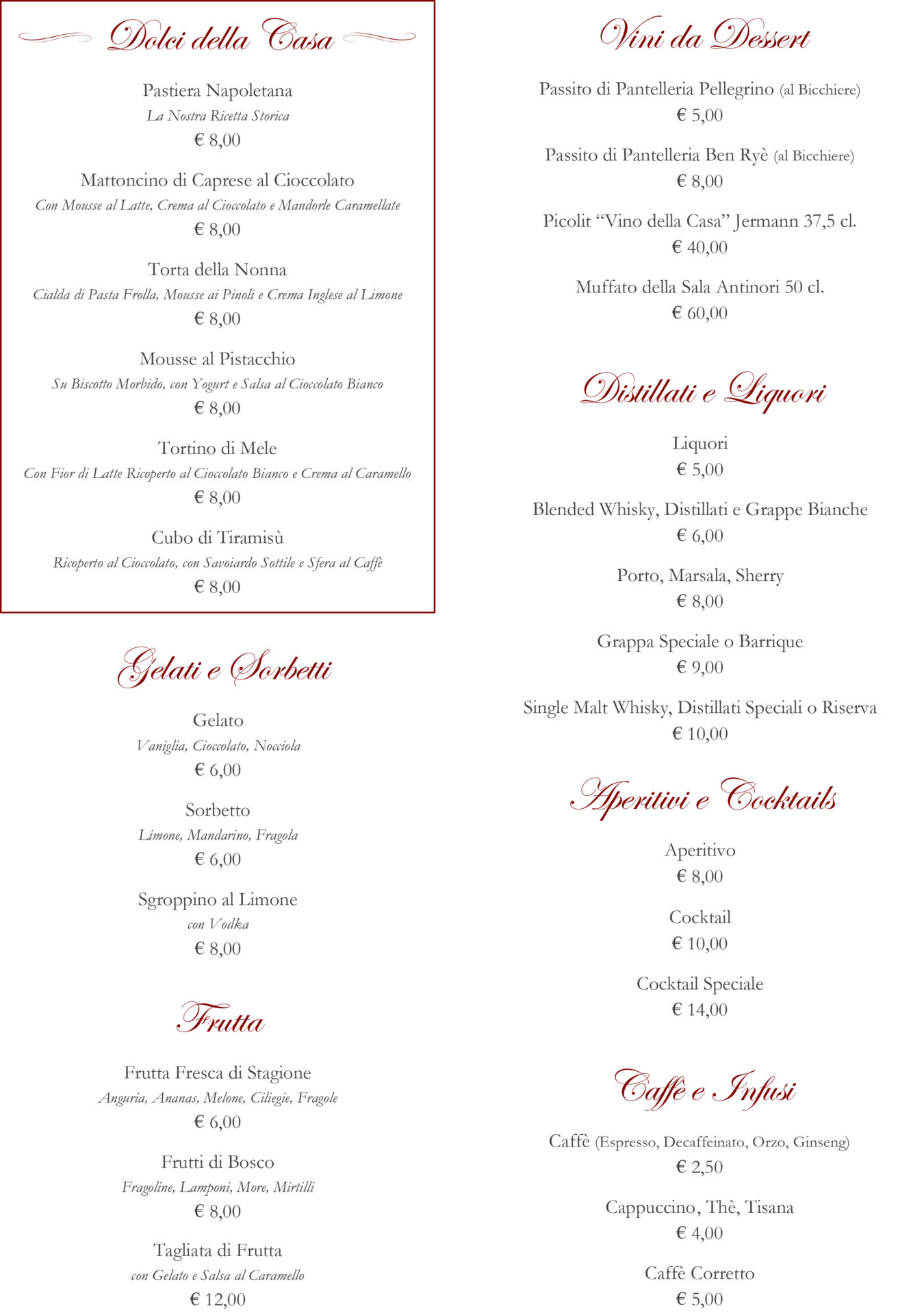 Saremo felici di accogliervi con proposte gastronomiche uniche, pensate appositamente per questo giorno speciale che passeremo insieme: il meglio dei nostri piatti, preparati per voi solo con le migliori materie prime e i prodotti di stagione.